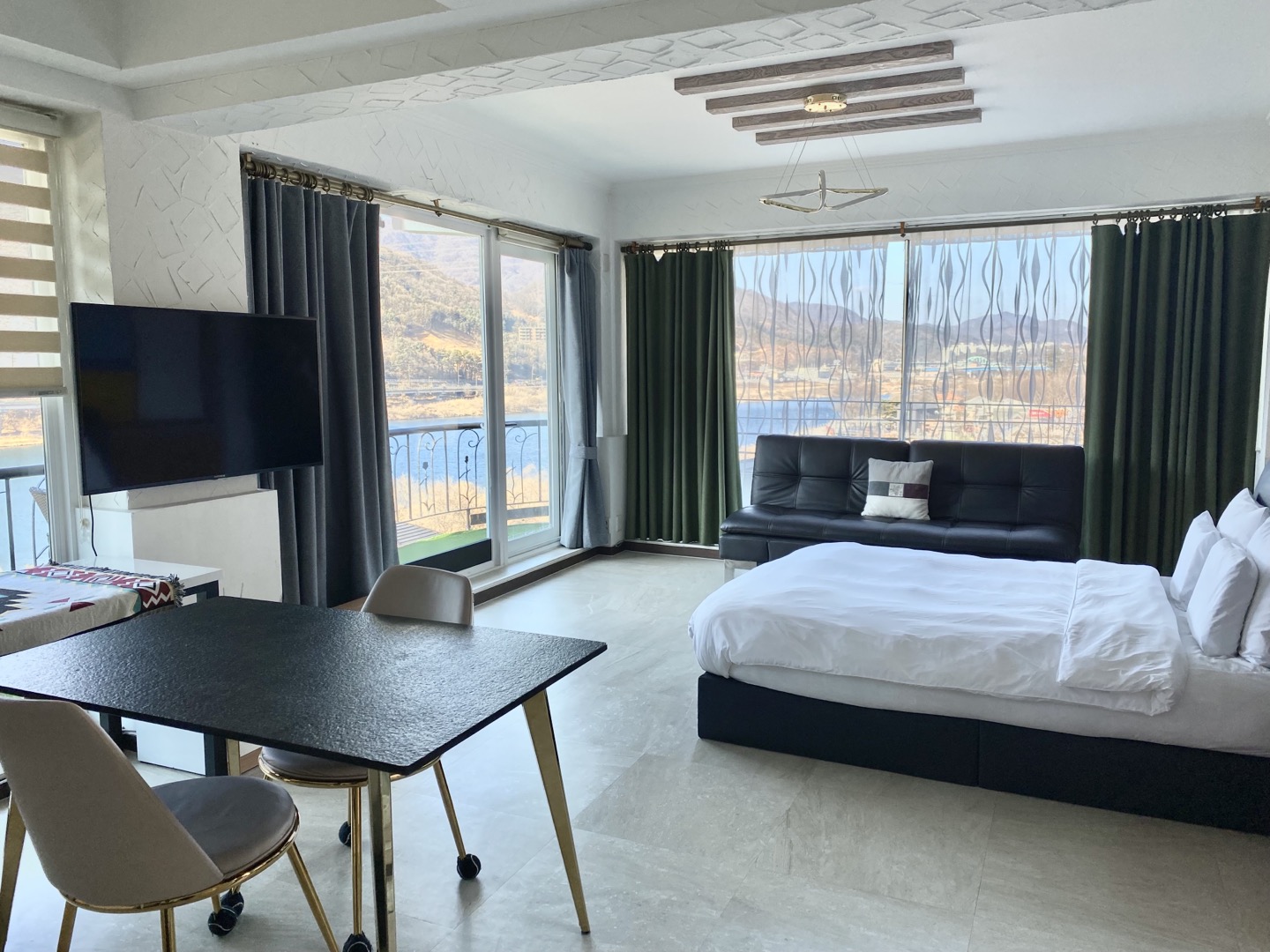 객실에 입실하자마자 북한강뷰가 펼쳐져서 너무 예뻤어요:)