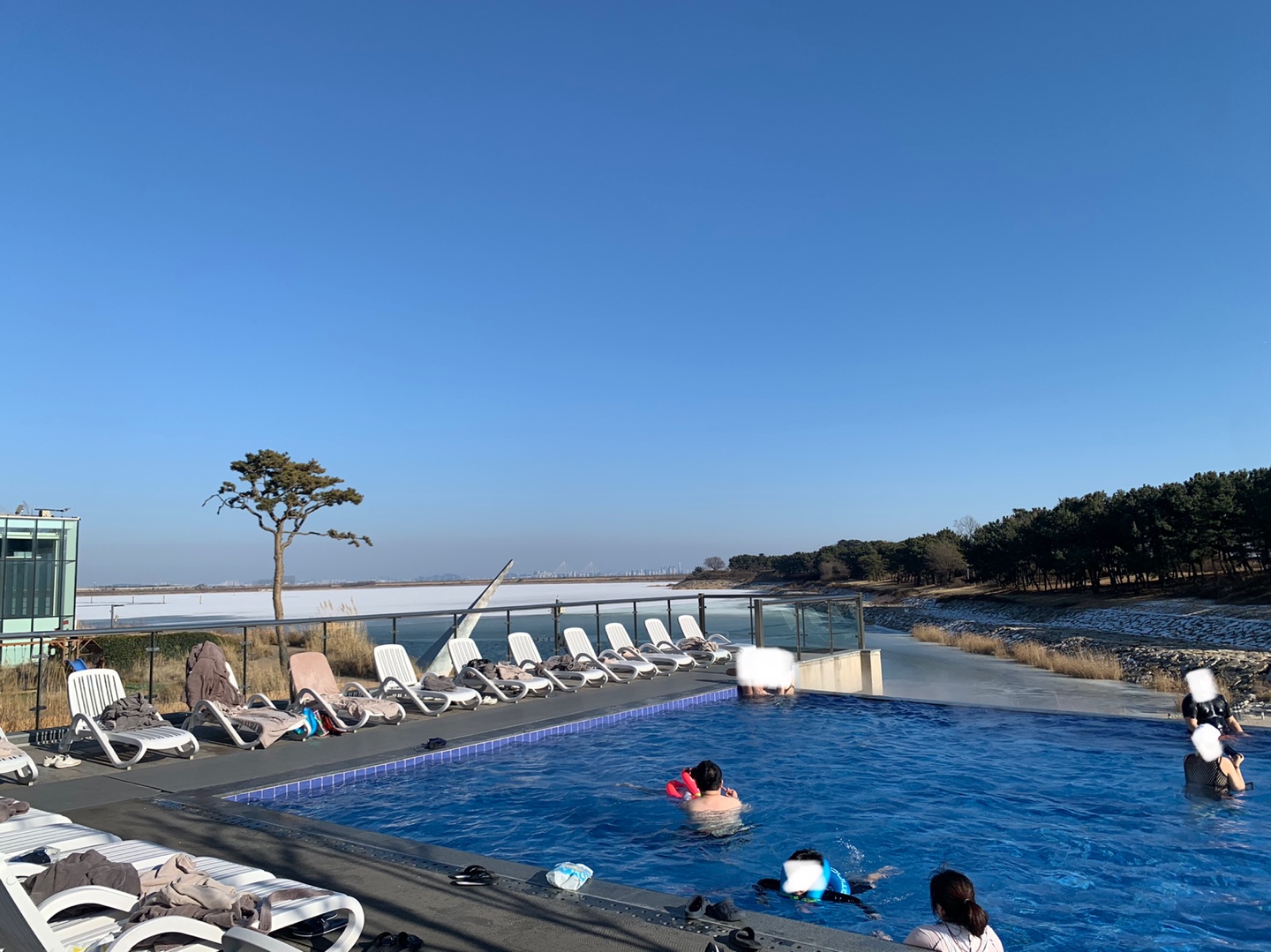 야외 온수풀이지만 날씨가 추웠기에 고객님 건강이 우려됩니다.