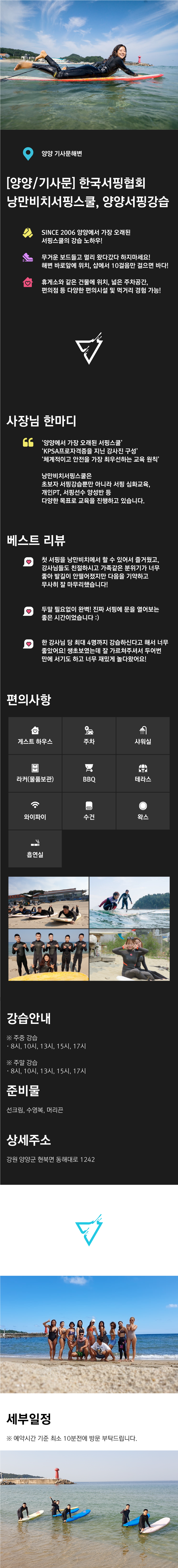 3. 풍랑주의보 및 태풍 등 기상 악화로 인해 파도가 클 경우 강습이 취소될 수 있습니다.