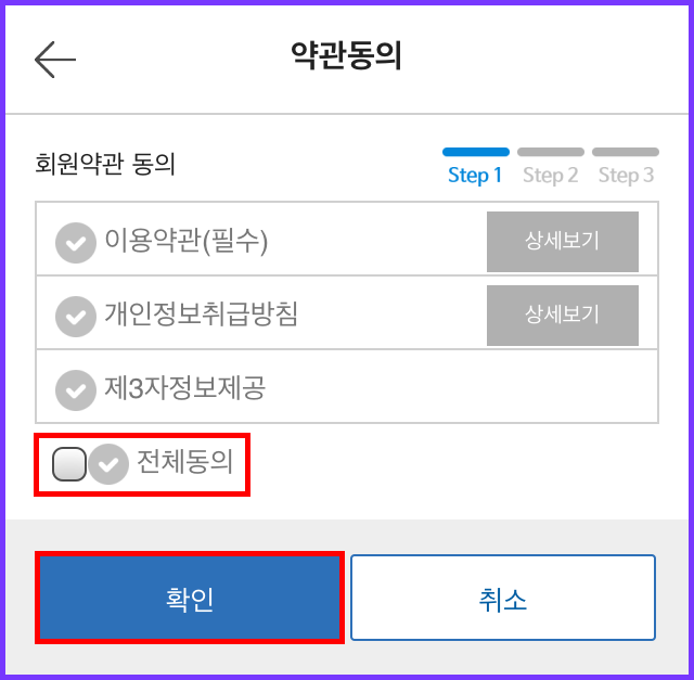 2. 약관 동의 후 다음단계로 진행