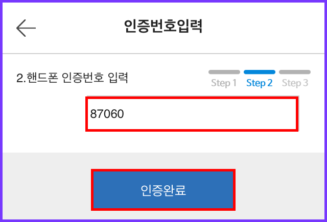 4. 핸드폰 인증번호 입력